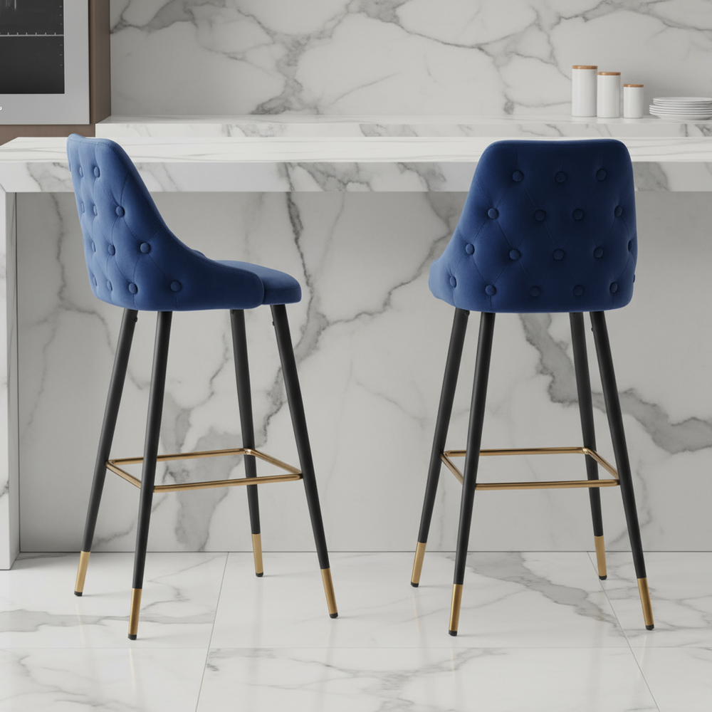 When it comes to the Avanza bar stool, it's all about the details. Full velvet upholstering, black metal legs with contrasting hardware, and bespoke button back design, the Ava serves up ultimate comfort and ultimate style, in one design.