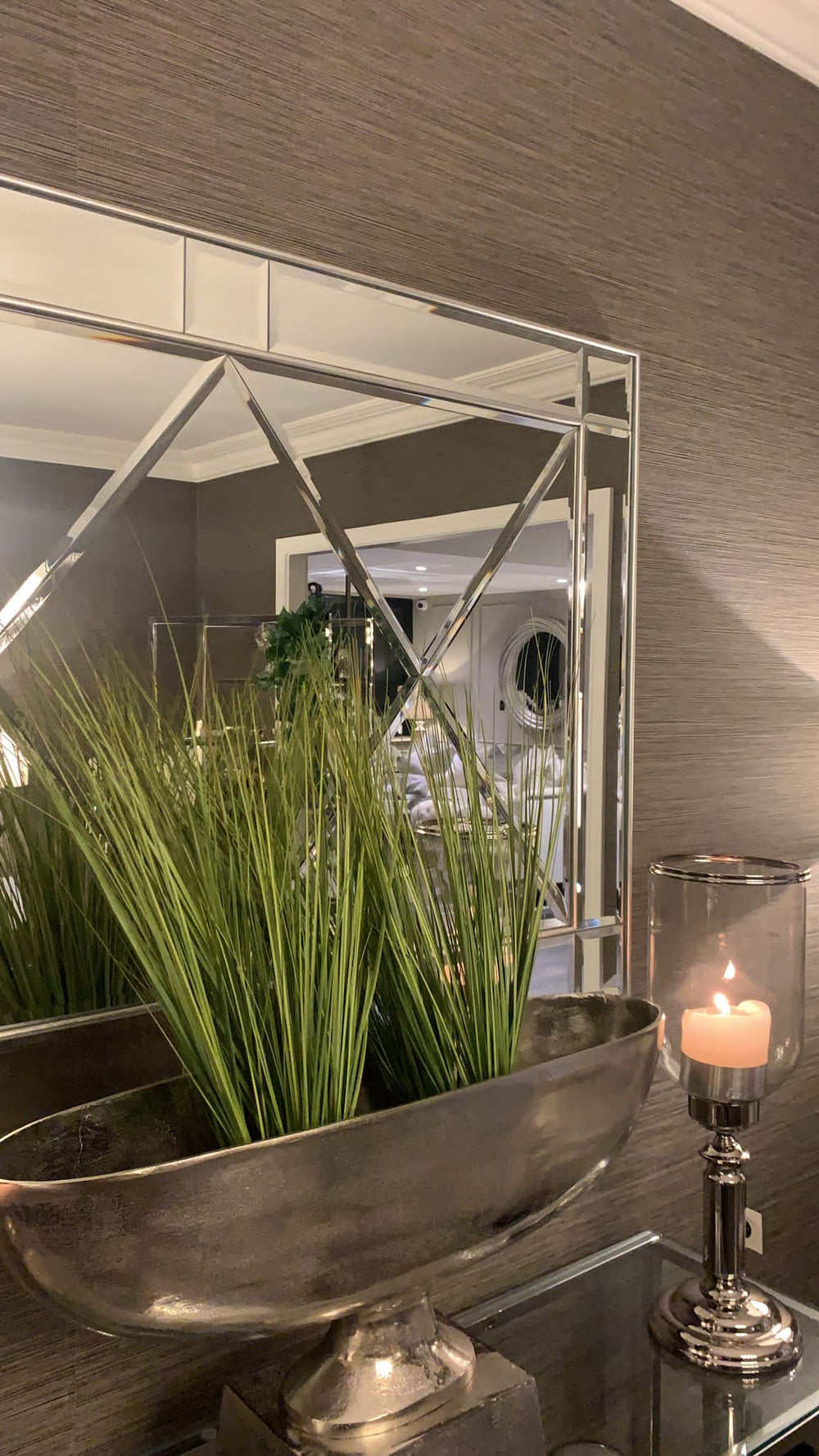 Fabulously stunning large mirror with cut glass section and metal inlay