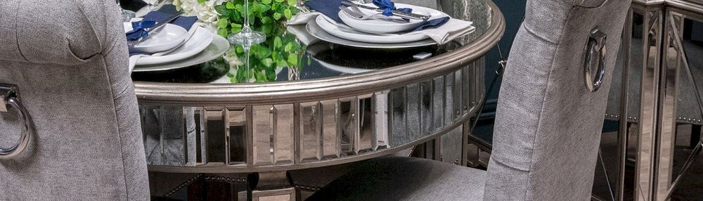Alice MIRRORED DINING TABLE ROUND WITH CHAMPAGNE EDGING SIMPLY STUNNING AND REDUCED THUS WEEK