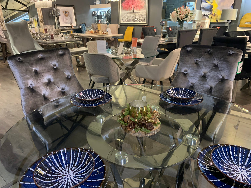 The Bellingham is a dining chair of luxury - beautifully designed with chrome legs and crushed velvet.