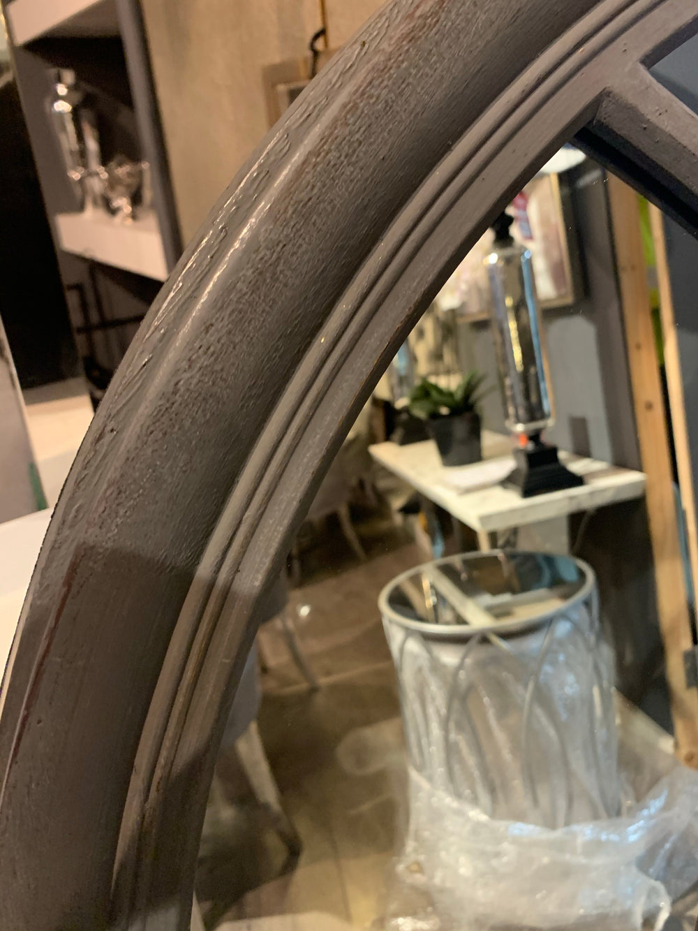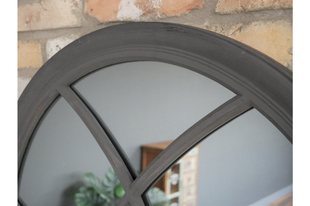 Fabulous Antiqued appearance mirror in charcoal grey , hand painted wooden Window mirror