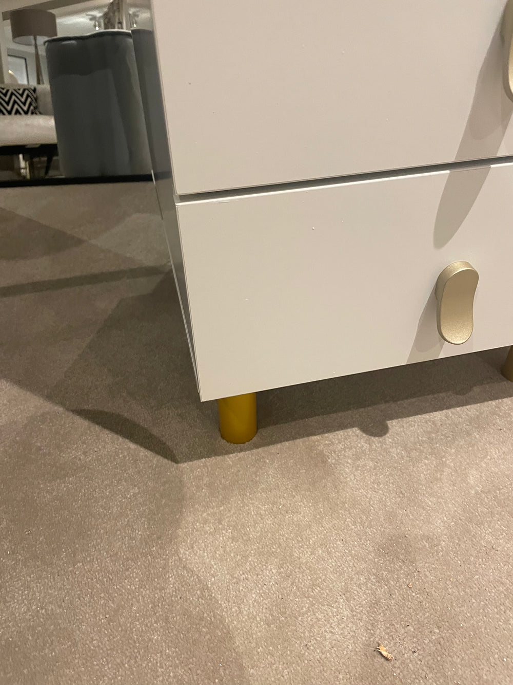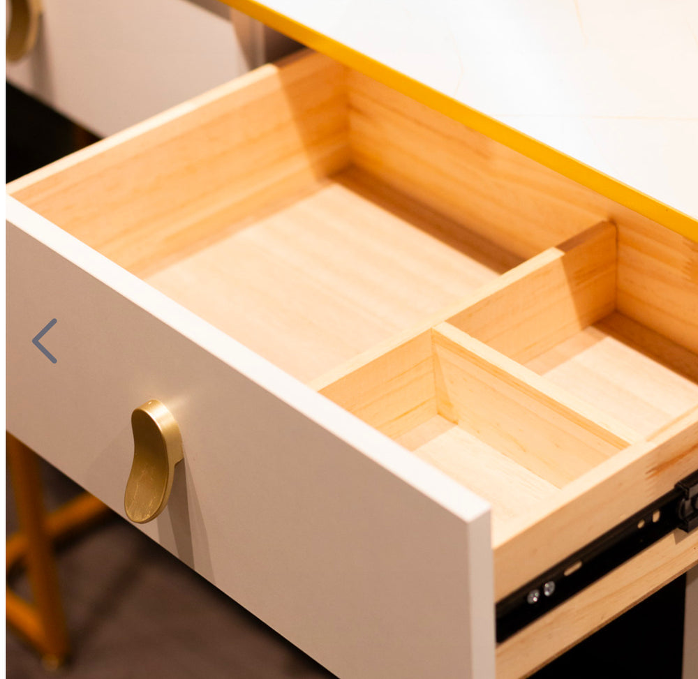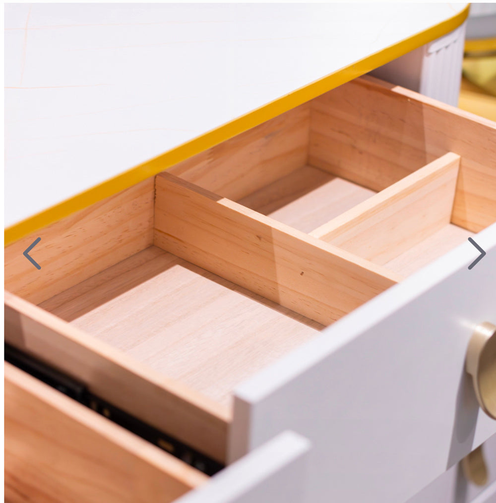 With a maximum width of 130cm, the table measures 100cm wide, while the locker is 36cm wide. The set boasts a depth of 40cm and a height of 73cm, excluding the mirror. The mirror itself has a generous diameter of 43cm.