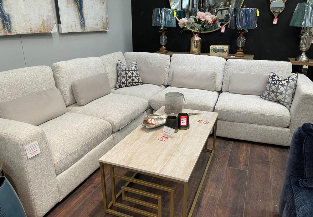 With its modern design and loose back and seat cushions, this sectional offers both style and comfort. The modular system allows for unlimited options to fit your space perfectly. Upholstered in luxurious textured chenille fabric, it adds sophistication to any room. The pocket sprung seat ensures optimal support, while the included scatter cushions add a touch of elegance. Finished with solid wood legs, the Humber Sectional combines style and functionality effortlessly.