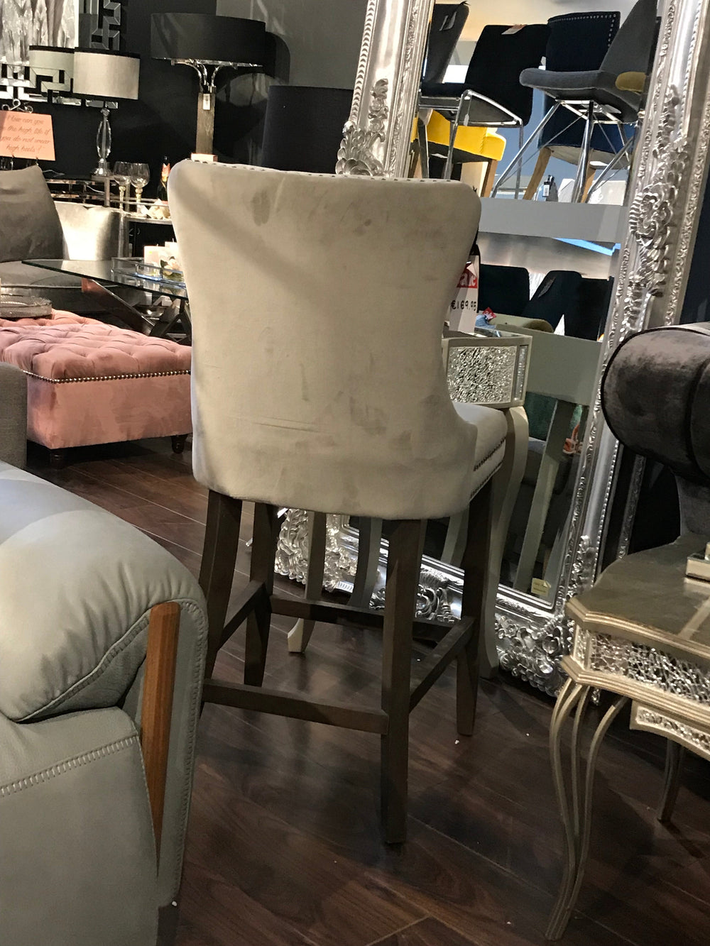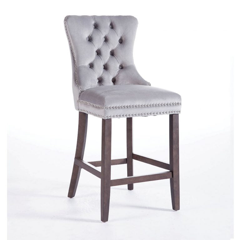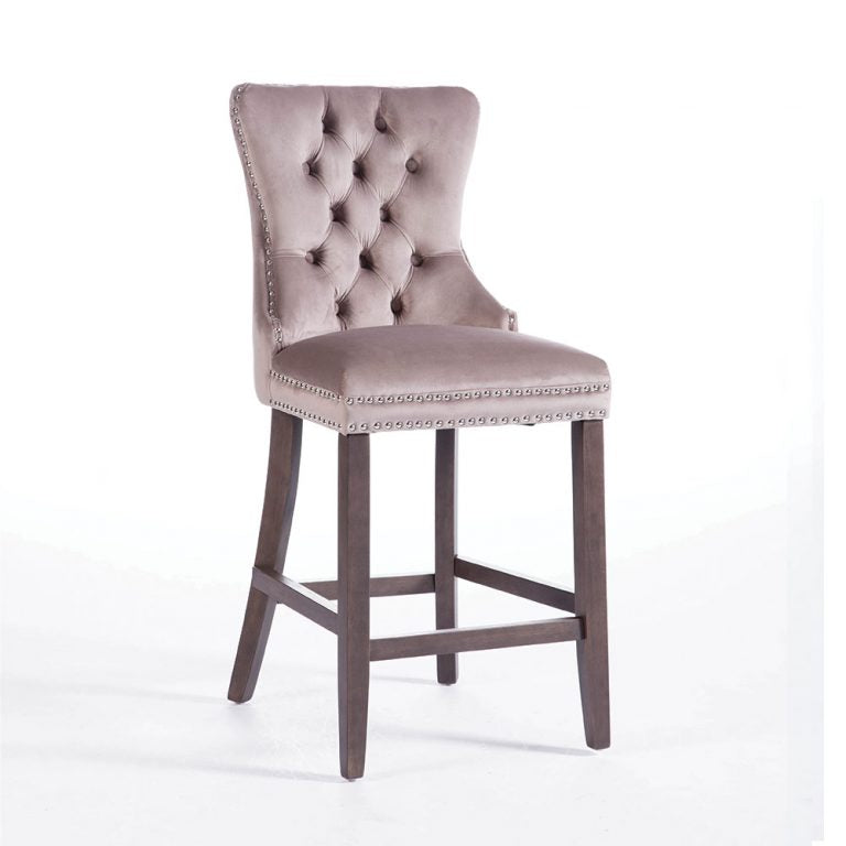 The epitome of understated, refined luxury, the Kayla is beautiful to look at and a pleasure to use. With its solid frame, elegant silver stud detailing, this velvet, fully upholstered bar stool chair sits effortlessly in any environment.