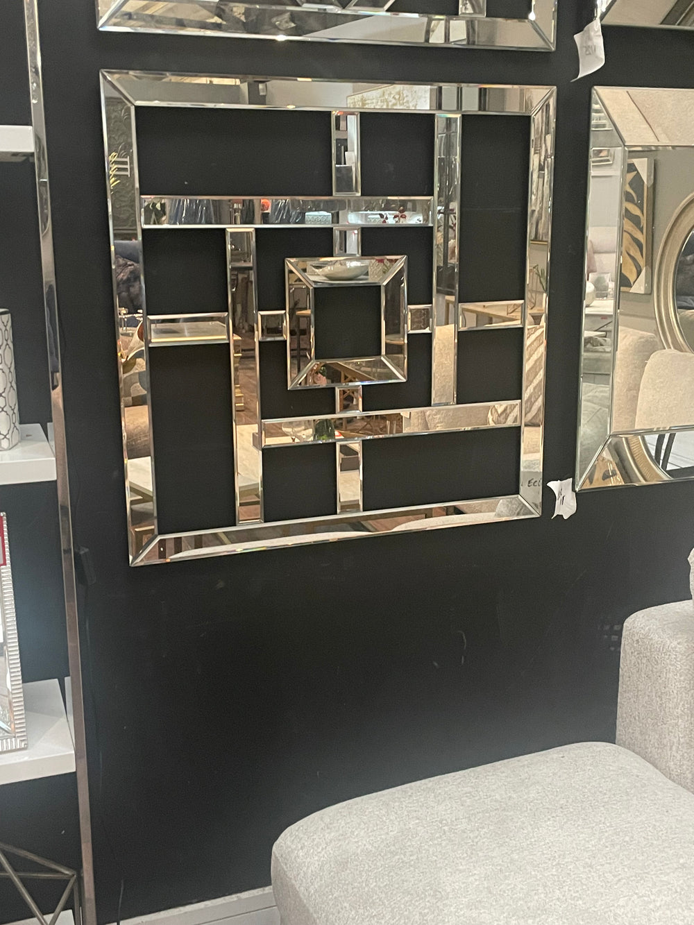 Premium Manhattan Geo Mirror Wall Art in all clear mirror with Clear mirrored sections (90x90) NO WHITE