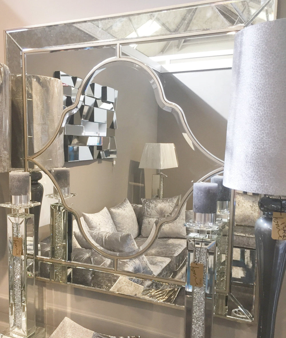 Exquisite luxury Marrakech mirror with features of antiqued glass plus brass inlay