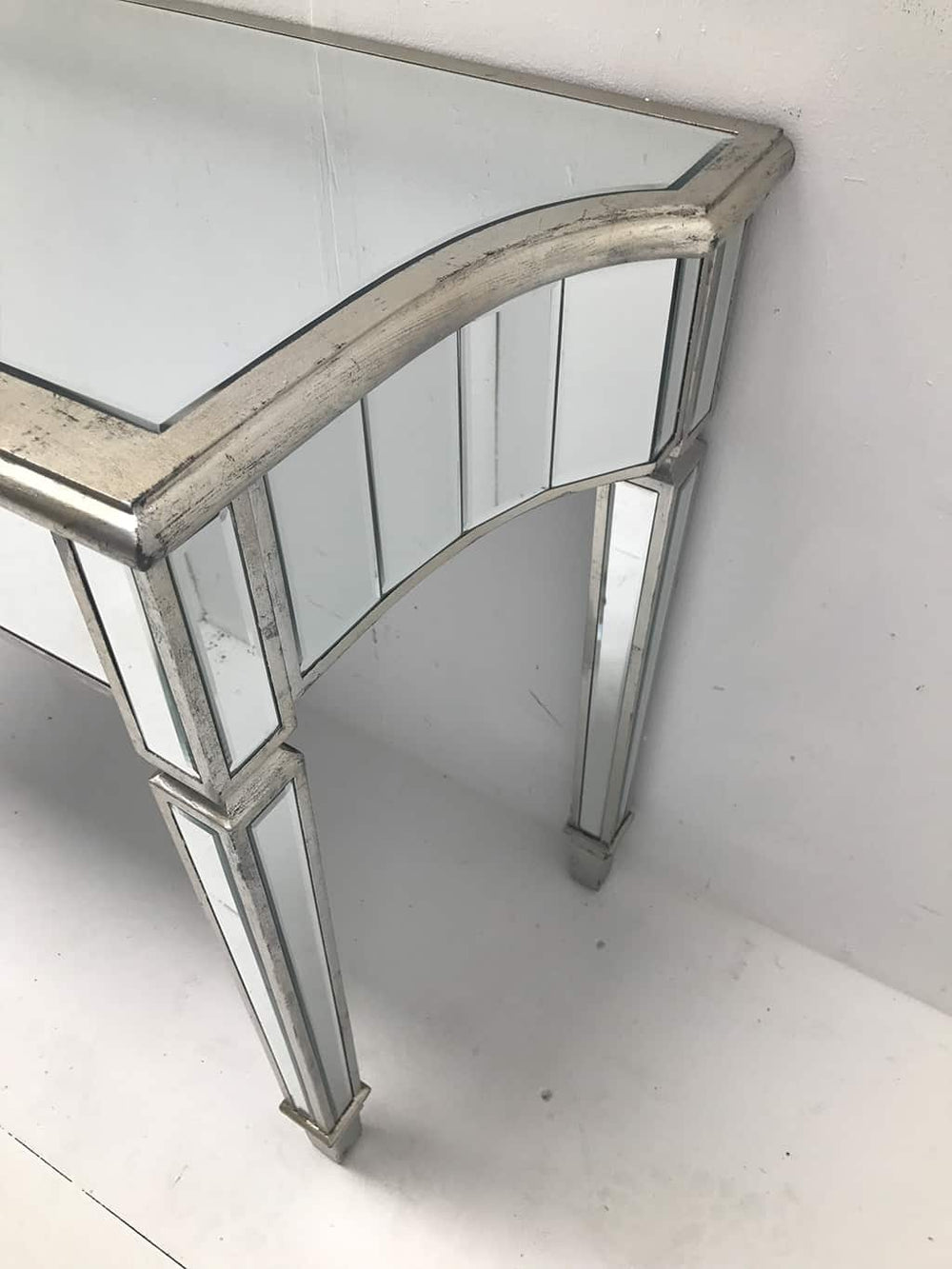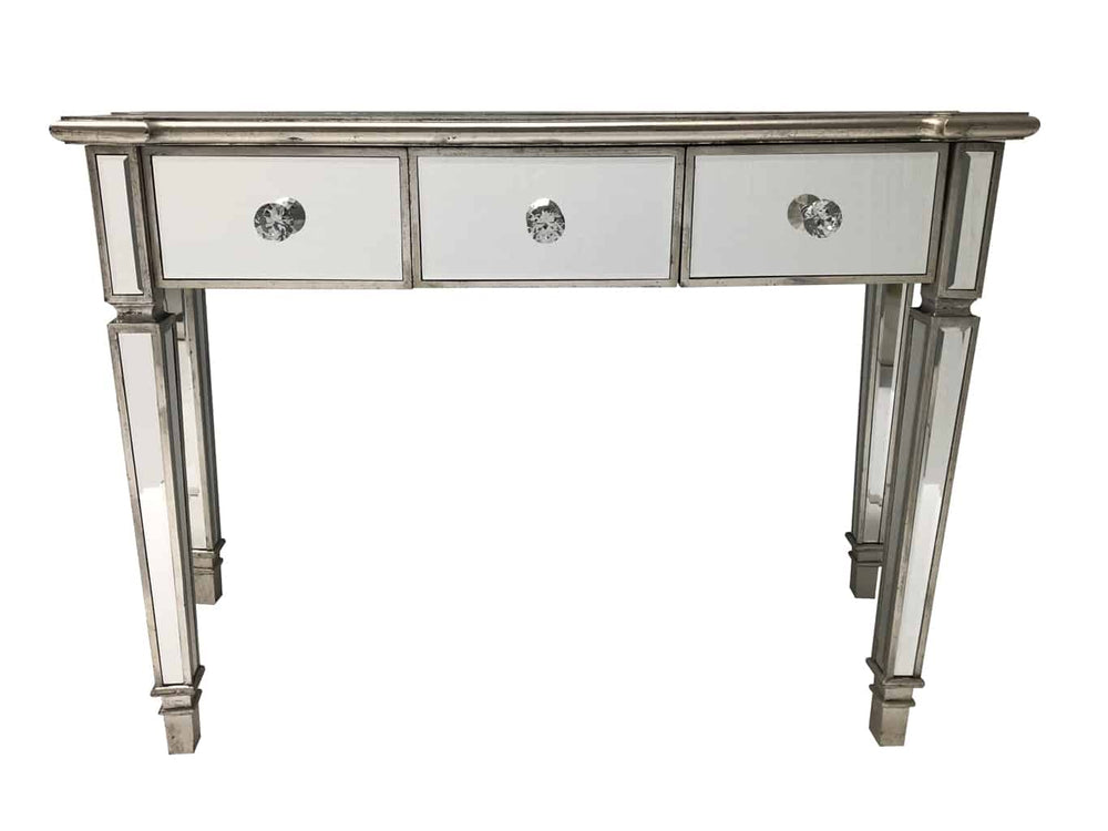 Mirrored Console Table with 3 Drawers and Silver Finish trim