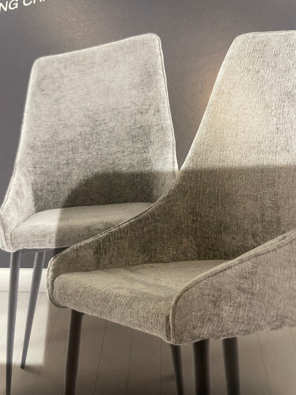 MALLORY GREY FABRIC DINING CHAIR - with grey boucle fabric covering and edge piping. This luxury dining chair will be a perfect match for our Dining Tables and can only enliven your dining room.