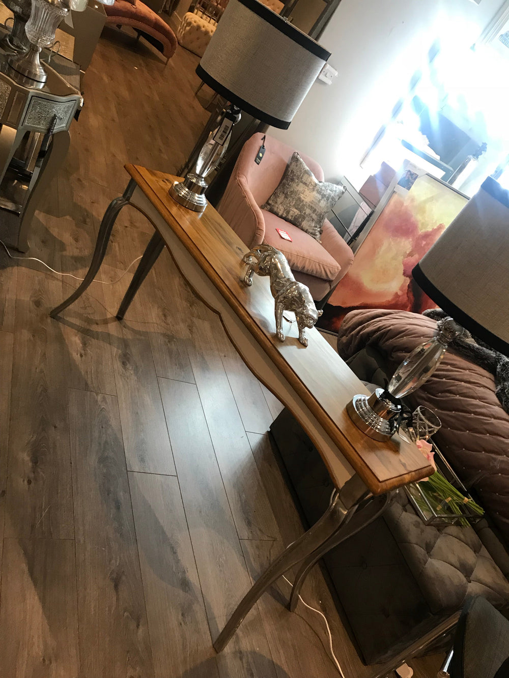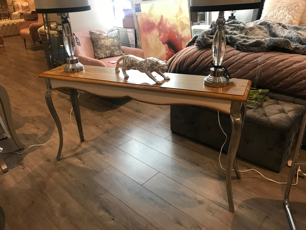 Fabulous Oak and aluminium Console Table with Curved Legs