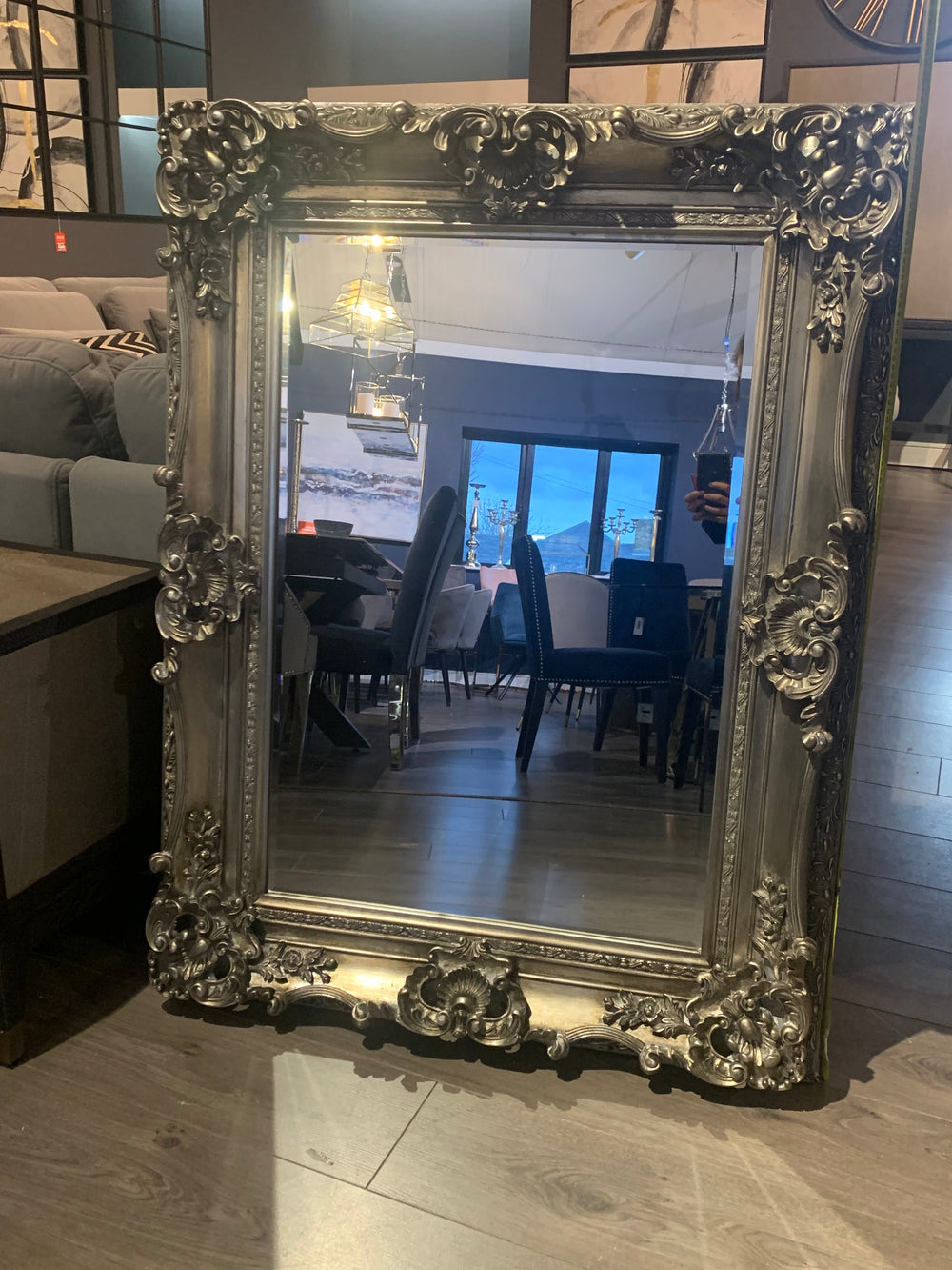 Antiqued Silver French Mirror Ornate with fabulous ornate frame
